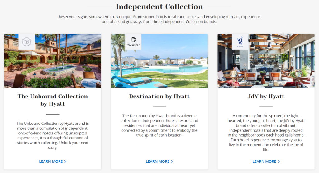 รวบรวมโรงแรม Independent Collection ในพื้นที่ต่างๆ ในแบรนด์นี้ จะเป็นโรงแรมระดับ Upper Upscale and Luxury hotels